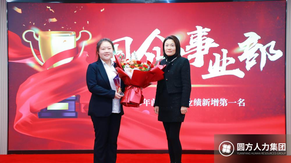 会议期间,圆方人力总经理祁淑敏上台公示了2025年前三季度的业绩经营成果,圆方人力国企事业部荣获业绩第一名的殊荣。